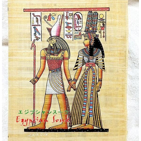 パピルス絵画 ホルスとネフェルタリ王妃【A4・宅急便のみ】OPで額付