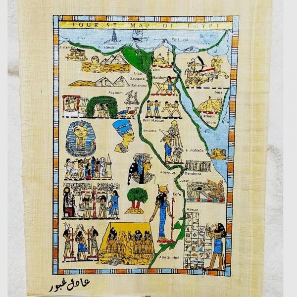 パピルス絵画 エジプトマップ【A4・宅急便のみ】OPで額付