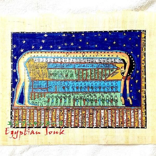 パピルス絵画 ラメセス6世王墓 太陽を生み出すヌト 昼の書・夜の書【A4・宅急便のみ】OPで額付