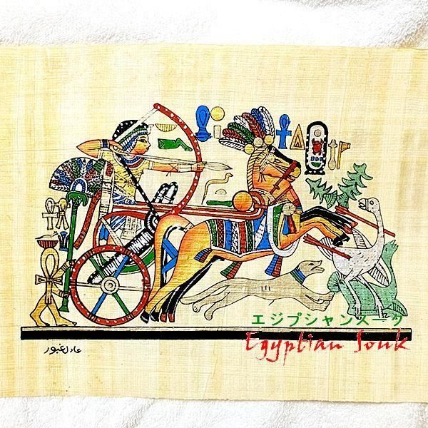 パピルス絵画 戦車で鴨狩を愉しむツタンカーメン王【A4・宅急便のみ】OPで額付